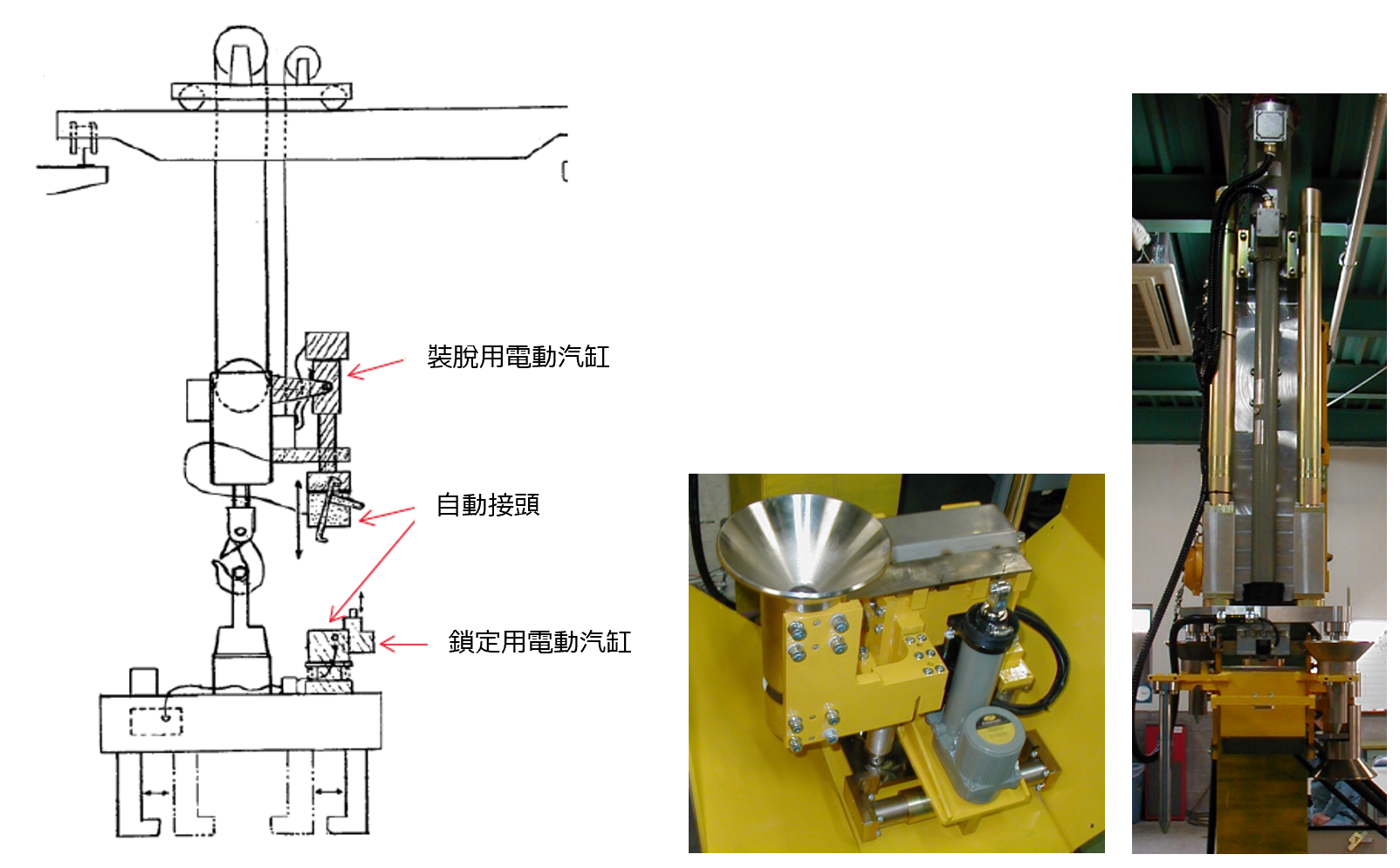 因為導入自動接頭,所以可以從駕駛座直接發出裝脫信號,實現吊具更換的自動化。
